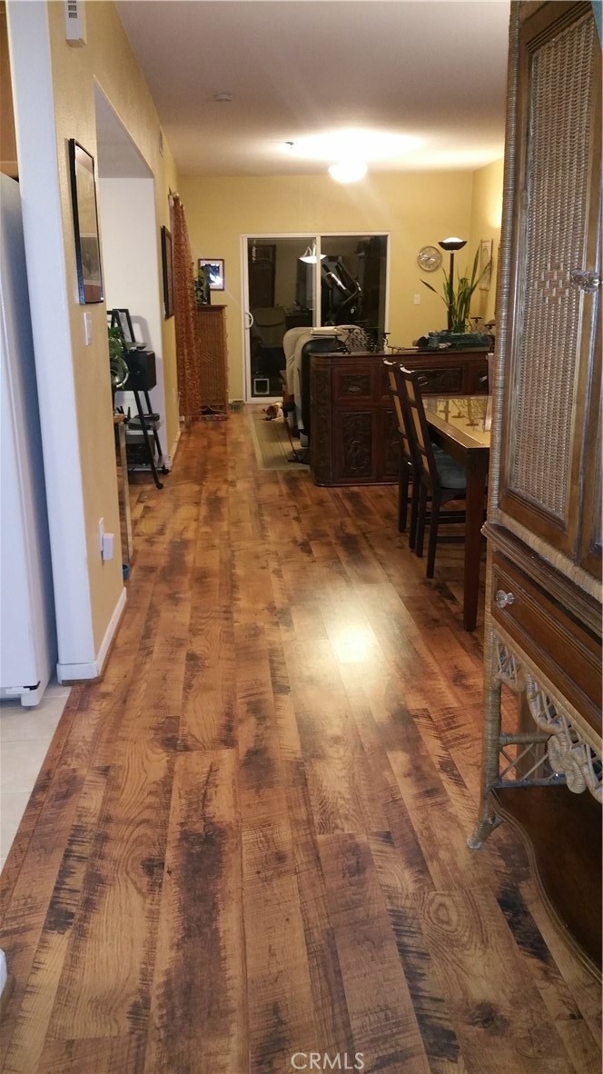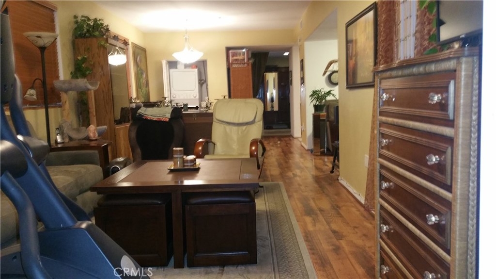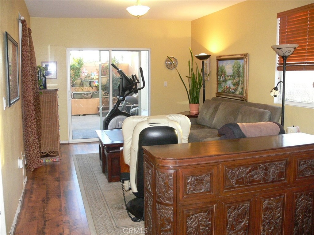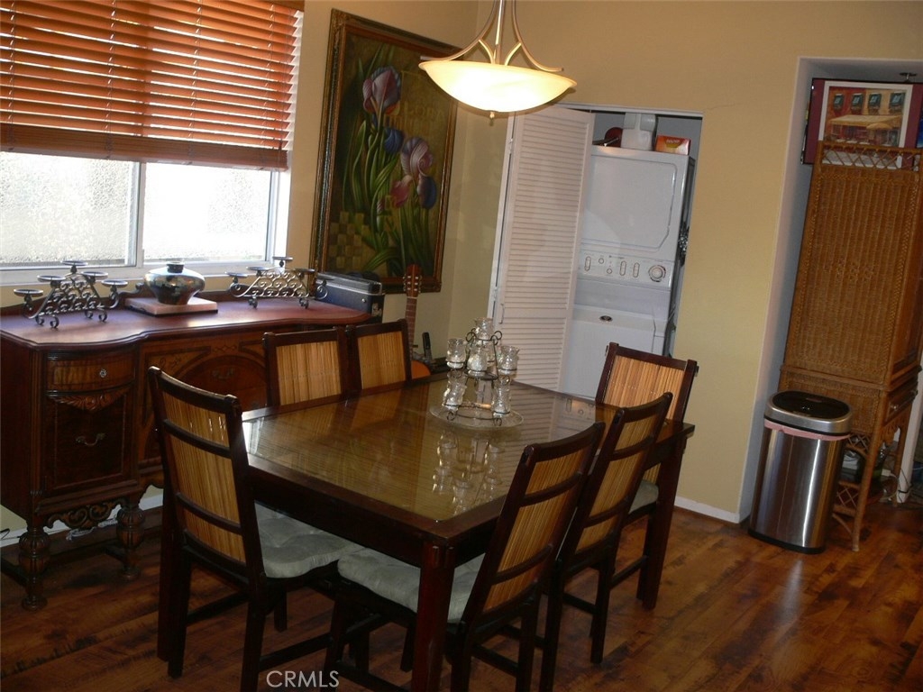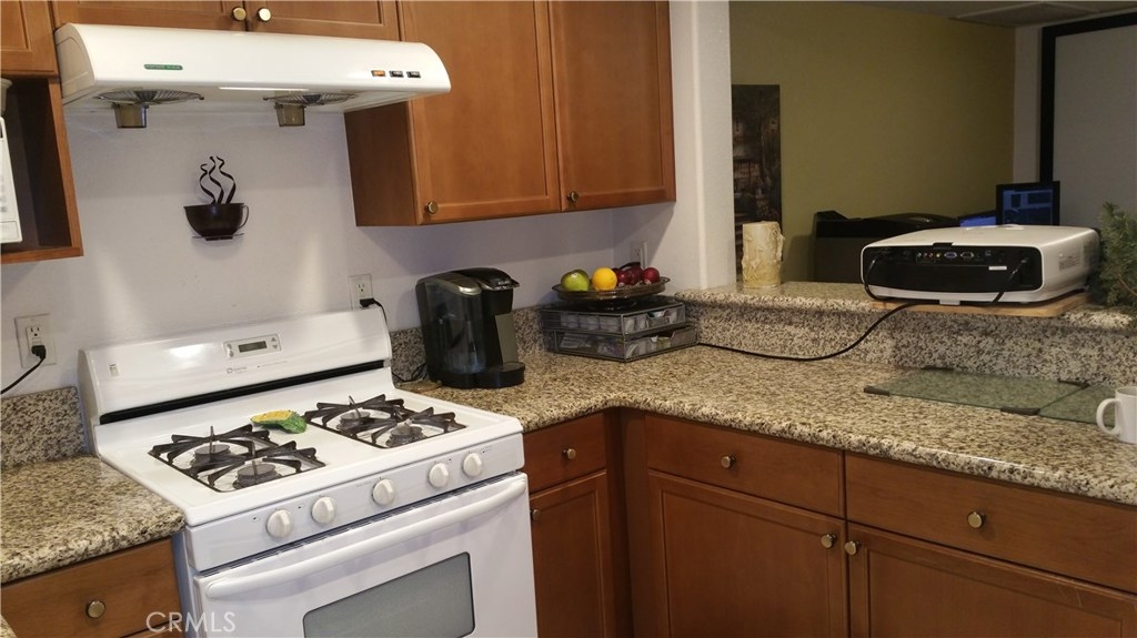 NOT a Senior age restricted complex. Granite Kitchen, All appliances included, Single level floorplan, 4 elevators, & 2 side by side parking spaces ~25 feet from the elevator, in Unit Stacked Laundry. This corner unit has windows facing both East and North. Enjoy meals along Main Street from at least 30 local businesses within a 6 block walk and to the Farmers Market twice a week & live outdoor music 3 blocks away and plenty of nightlife at the bar & grills.North facing private 9x20' patio is exclusive to this unit and there are only 6 condos in Alhambra Regency Plaza with a similar patio. Patio has additional tiered steps for plants or cushions.Two (side by side) parking spaces are in the security gated subterranean garage, & security cameras, gas stove/oven, Maytag refrigerator with ice maker water/ice in the door, microwave, dishwasher, and in-unit washer dryer, No Carpet: All Laminate and Tile Floors, Hunter Douglas wood blinds on 3 windows.Two separate areas for work space or TV.Tub/shower surround and glass shower door. Recessed lighting with Smart Home light switches that dim. Large sliding glass door leads to the private patio. Den or TV room is about 9-1/2'x10' size. HOA FEE $232.77/mo includes Water and Trash.