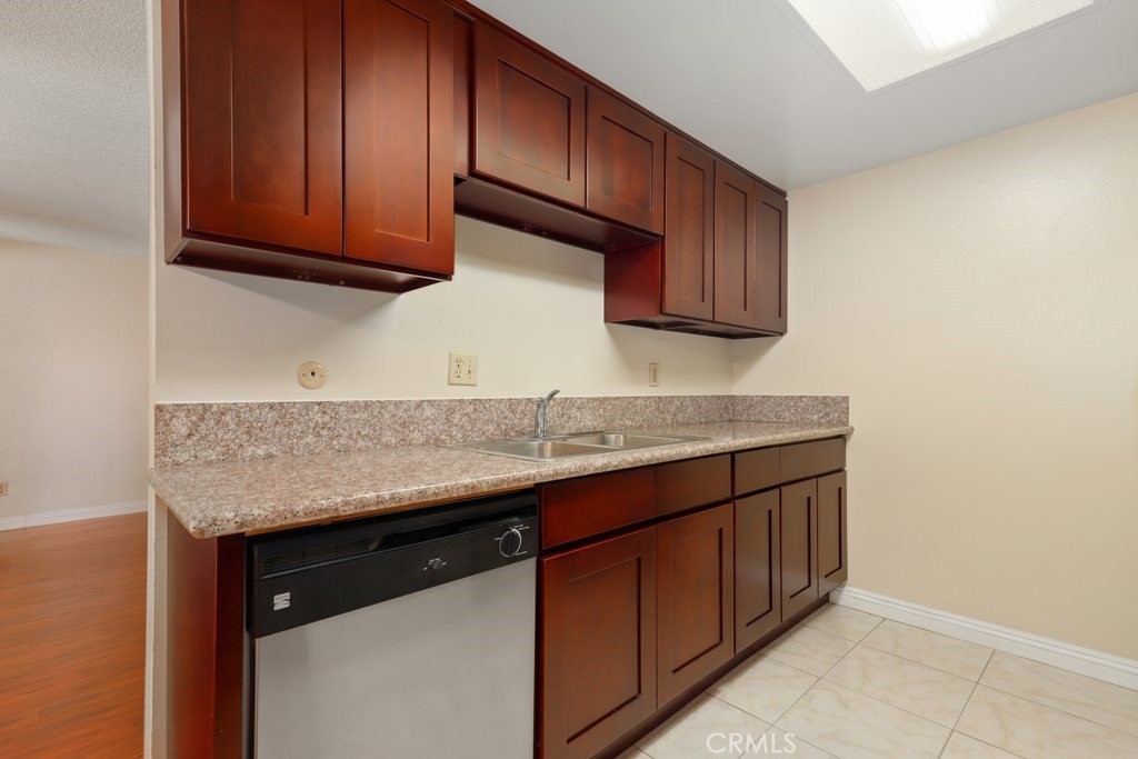 A serene oasis just two blocks from the hustle and bustle of Main Street in downtown Alhambra, this spacious 1+1 condo is located in the private and quiet back part of a peaceful, well-maintained gated community.The home features an updated kitchen with shaker cabinets, granite counters, stainless steel appliances and plenty of counter space. Updated laminate wood flooring is featured throughout the spacious living room, bedroom, dining area and closets. One closet is wall to wall with floor-to-ceiling mirrors, while the other is walk-in and large enough to serve as a small office. Front windows from the dining area and living room look out onto a lawn and garden area, while rear windows give a view of tall trees. The front porch is both generous and private, with ample space for a small patio table and a couple of chairs, where you can enjoy your morning coffee in the warm sunlight and immerse yourself in a book in cool shade in the afternoon, disturbed only by the occasional bird songs. The property comes with a covered car port with a storage cabinet and one reserved uncovered parking space within the residential complex. The complex offers a furnished recreation room with two bathrooms, a kitchen and a patio which can be reserved for private parties and meetings. It a close distance of everything: supermarkets, restaurants, retail stores, banks, post office, schools, library, fitness center, movie theaters, parks and many other businesses. With convenient access to the 10, 710 and 210 Freeways, it is also only minutes away from Valley Blvd. of the San Gabriel Valley, downtown L. A. and Pasadena, and their many cultural and entertainment venues and events, not to mention a vast array of shopping and dining options.