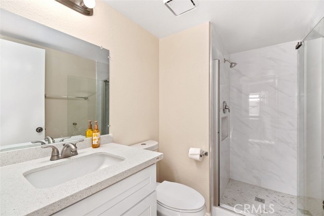Welcome to this newly renovated end-unit condo in the desirable north Alhambra, only one block from South Pasadena. An enclosed front porch provides privacy to the residents. This home was recently upgraded with fresh paint, laminate flooring, a newer kitchen, quartz countertops, brand new appliances, and renovated bathrooms with beautiful waterproof vinyl plank flooring and vanities. The open floor plan provides a large living room with a cozy fireplace, abundant natural light through the windows, and a bathroom on the main level. Upstairs there are 3 bedrooms and 2 bathrooms. The office/den on the first level can easily be converted into a 4th bedroom with direct access to the attached 2-car garage, which includes the laundry area. The unit offers central air conditioning and heating. The HOA fee covers water, trash, sewer, and regular maintenance. Alhambra city park, Costco & Target are also nearby.