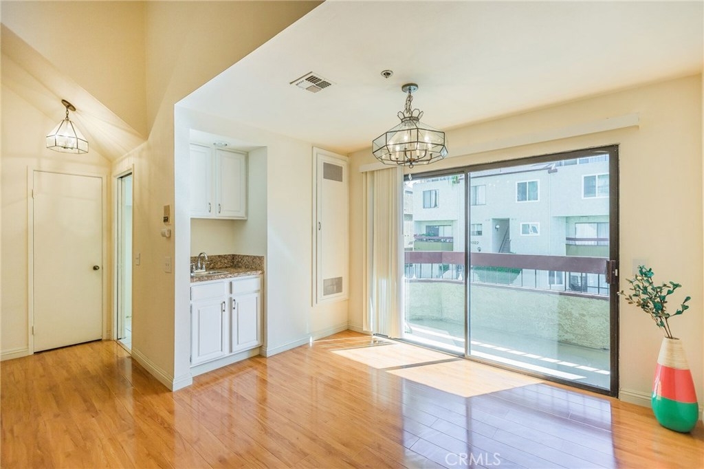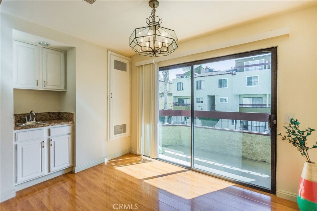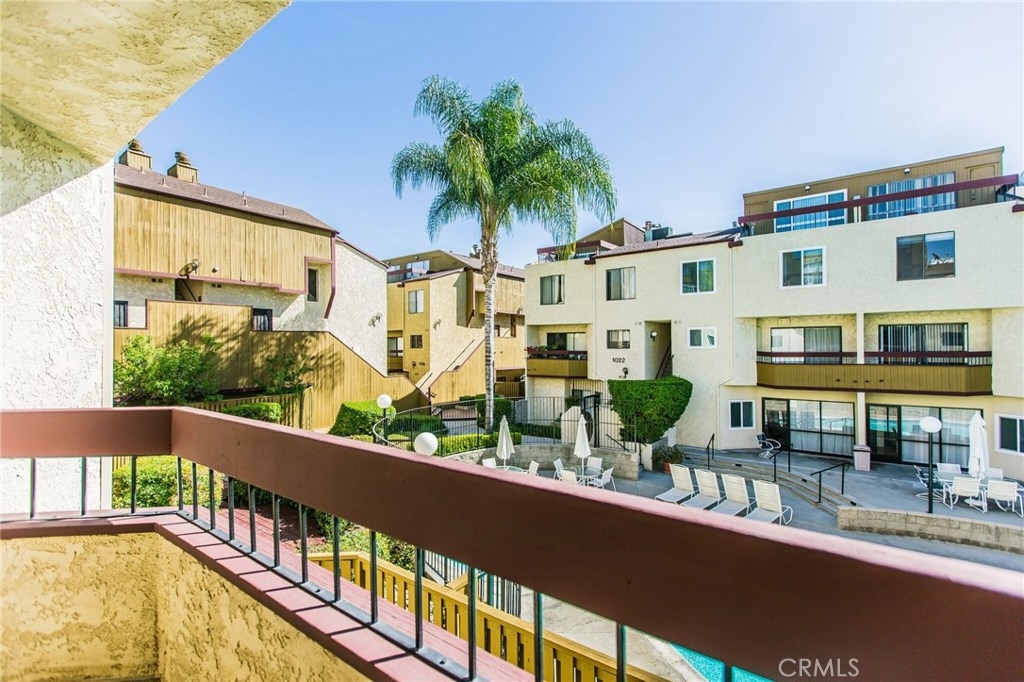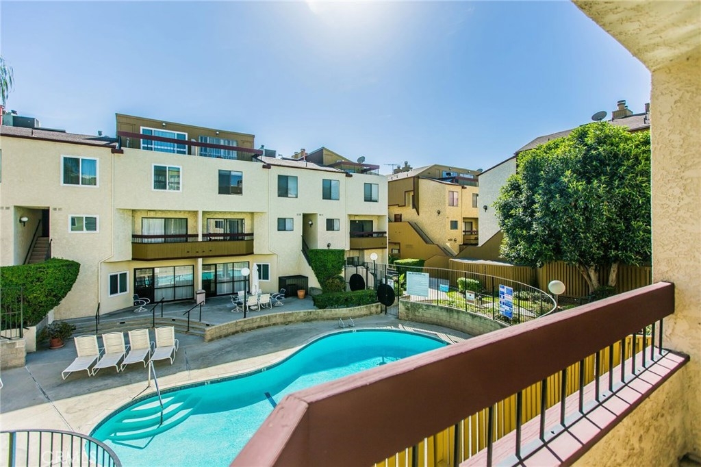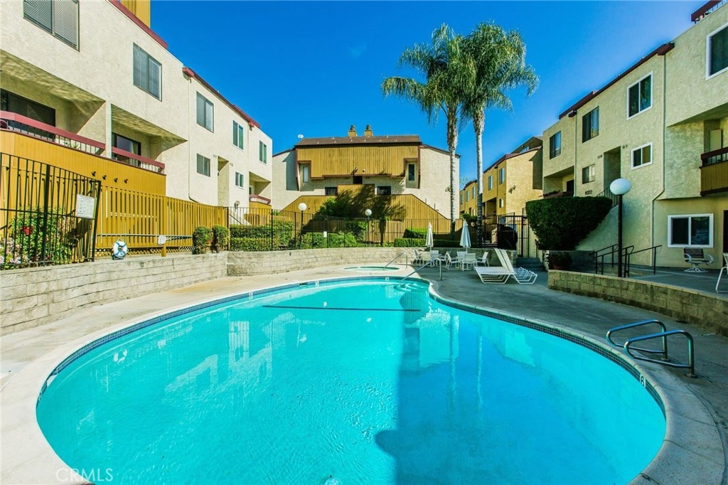 Newly upgraded wood floor and granite kitchen. Spacious tri-level condo with 3 bedrooms and 2 bathrooms. One of the better units with main floor balcony facing the pool with resort-like view. All bedrooms are with high vault-like ceilings. All windows are facing East which means rooms are cooler in the afternoon. This condo comes with two underground parking spaces and a storage closet. It has central HVAC and laundry hookups. The community pool and spa are just steps away. It is within walking distances to local markets and restaurants with easy access to FWY 10 and FWY 710. HOA fee include water, trash, earthquake insurance.