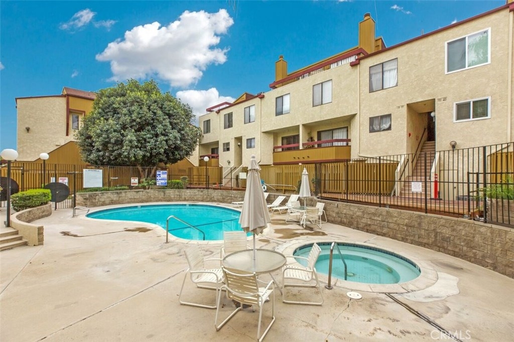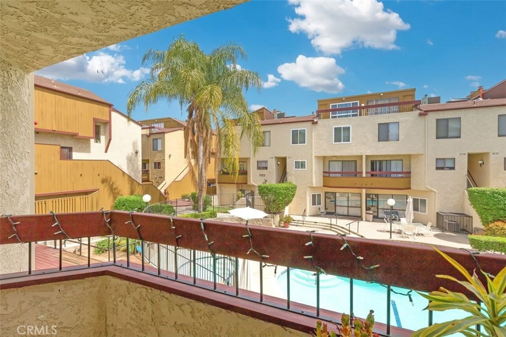 Spacious tri-level condo with 3 bedrooms and 2.5 bathrooms. One of the better units with main floor balcony facing the pool with resort-like view. All bedrooms are with high vault-like ceilings. All windows are facing East which means rooms are cooler in the afternoon. This condo comes with two underground parking spaces and a storage closet. It has central HVAC and laundry hookups. The community pool and spa are just steps away. It is within walking distances to local markets and restaurants with easy access to FWY 10 and FWY 710. Move in ready! The HOA fee covers water, trash, and earthquake insurance.Please submit offer, we accept backup offer.