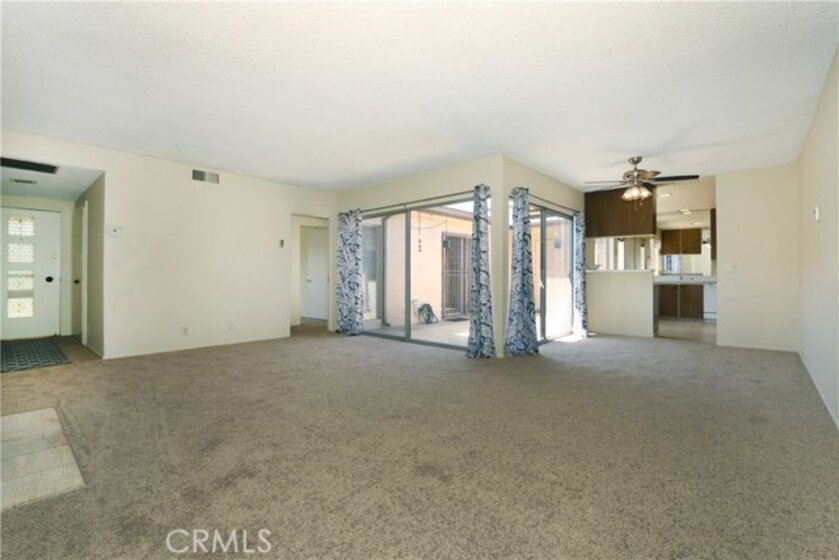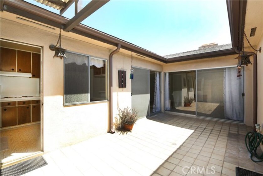 SINGLE STORY WITH VERY LIGHT AND OPEN ATRIUM FLOOR PLAN! Has a spacious living room with fireplace, dining room with ceiling fan, bright kitchen with mirror, two large bedrooms and an attached two car private garage! Central Air, new paint thru-out and new carpet in living room, dining room and bedrooms! Quiet location in back of complex with easy street parking for visiting guests (City restrictions apply), walk to shopping and restaurants. Well kept complex with pool, spa and clubhouse.