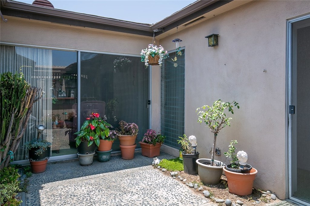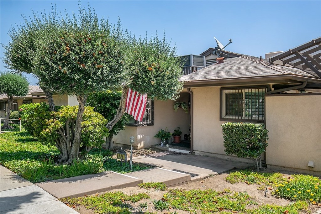 Beautiful and stylish single story Mid-Century Modern condominium with a striking atrium patio. Enjoy condominium living with the feeling of a single family detached home through its direct street frontage. Conveniently located to restaurants, markets, and shops. Turnkey condition and features spacious living room with fireplace and dining area looking into atrium patio, master bedroom with full bathroom, central HVAC, kitchen with built-in cook top stove/oven, open floor plan with abundant natural lighting, contemporary paint décor, and two enclosed garage spaces. Complex has a gorgeous swimming pool, spa, eye-catching landscaping, & HOA clubhouse.
