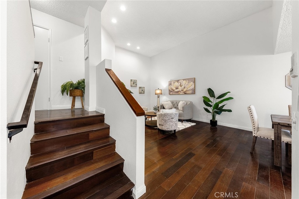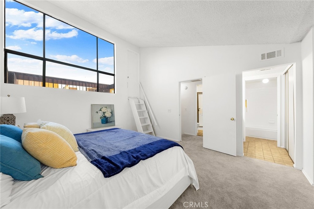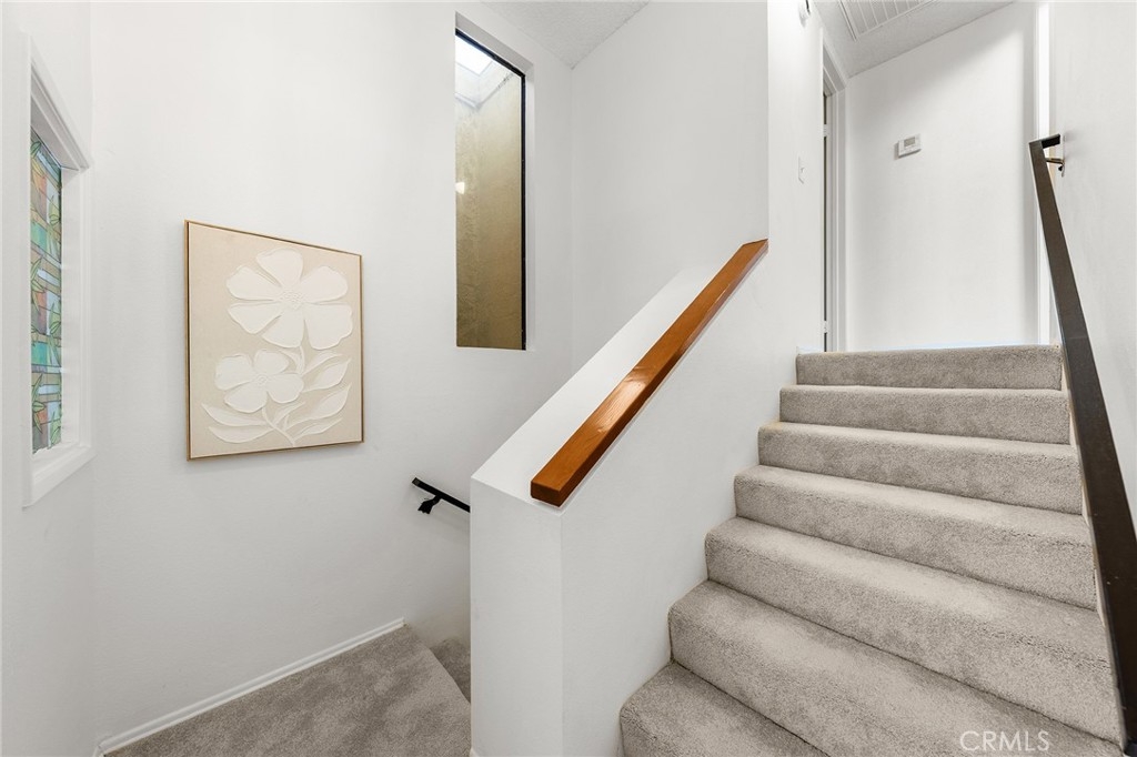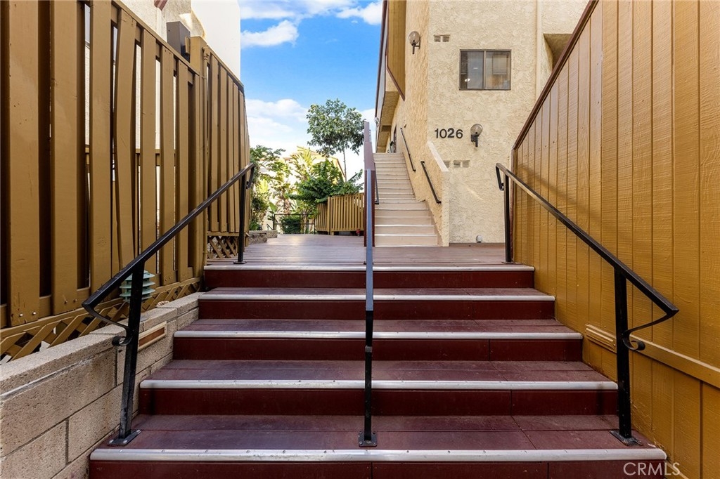 Welcome to this bright and airy contemporary unit featuring a newly updated kitchen and bar, new water heater, new gas stove and new carpet. Building 1024 is right by Marengo which make easy access from street to unit and unit facing east overviewing the walkway of the courtyard is quiet and highlighted by large windows and a glass sliding door that fill the space with natural light. The spacious living room boasts high ceilings and a beautiful fireplace, creating an inviting setting for relaxation and entertaining. The dining area seamlessly connects to the bar and private patio through another sliding glass door — perfect for morning coffee or evening gatherings. Upstairs, the primary suite offers vaulted ceilings, an en-suite bathroom, and a private rooftop balcony, providing a tranquil retreat with plenty of natural light, 2 side by side assigned parking #183 & 184 with storage. This well-maintained, secure complex features lush walkways, a sparkling pool, spa, and recreation room for residents to enjoy. Conveniently located near Costco, Home Depot, Downtown Los Angeles, Pasadena, major freeways, and a variety of shops and restaurants, this home combines modern comfort with unbeatable accessibility.