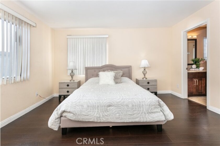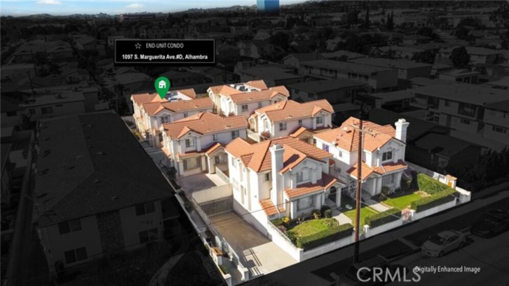 This gated-entry condominium community is located just minutes from Downtown Alhambra, with convenient access to a wide selection of restaurants, cafés, retail shops, local parks, fitness centers, the public library, banks, supermarkets, Costco, Home Depot, Target, and the golf course. This well-designed end-unit condo features 2 bedrooms and 2.5 bathrooms, along with a living room, family room, kitchen, dining room, laundry room, and a bonus room. Additional highlights include high vaulted ceilings, recessed lighting, a newer A/C and heating system, and wood laminate and hardwood flooring. The living room features high vaulted ceilings and large windows that allow ample natural light. An arched opening connects the space to the dining room, creating an open flow ideal for casual gatherings. The kitchen offers ample wood cabinetry, granite countertops, stainless steel appliances, a bright window, and tile flooring for easy maintenance. It flows seamlessly into the family room, creating a comfortable extension of the main living area. The upper level includes two bedroom suites and a laundry room, adding everyday convenience. The primary suite features a private ensuite bathroom and a spacious walk-in closet with custom shelving. The ground level includes a bonus room that can function as a home office, workout room, or storage room. This well-maintained home offers flexible living spaces in a convenient location, making it a great option for owner-occupants or investors alike.