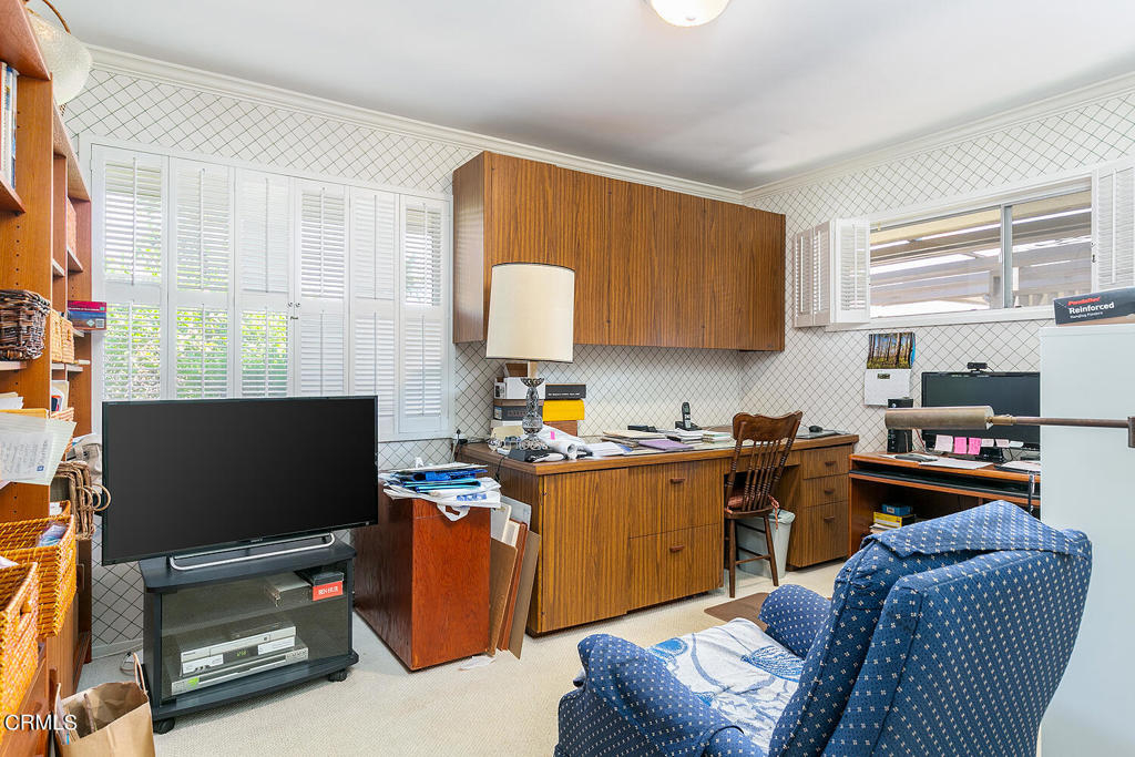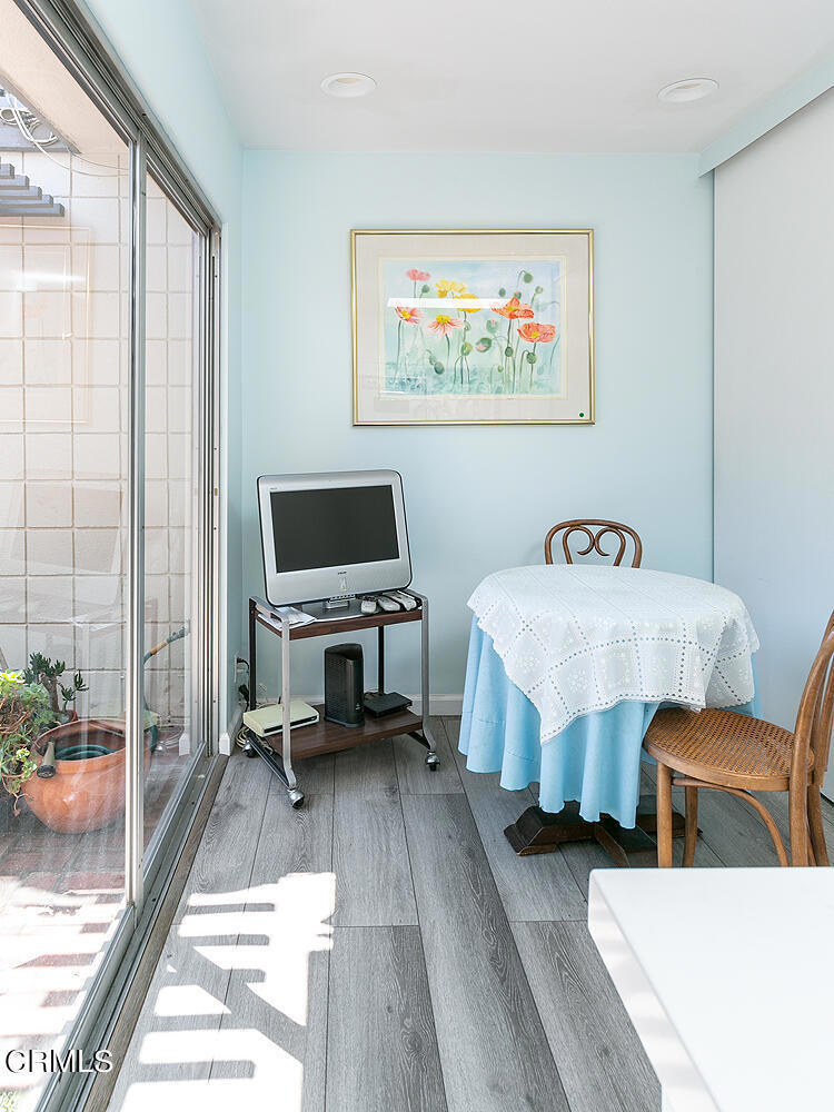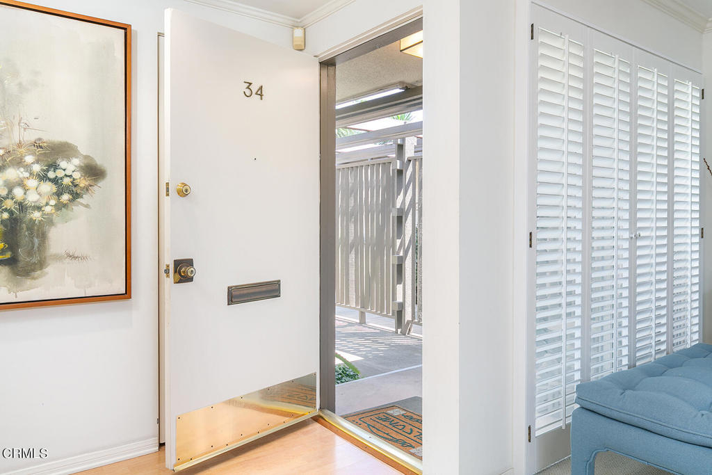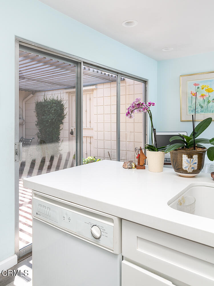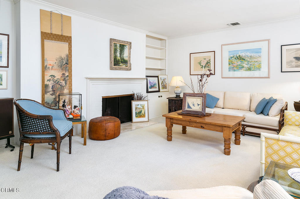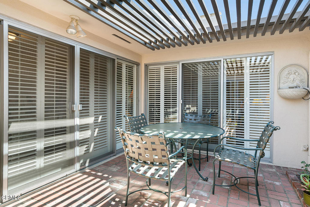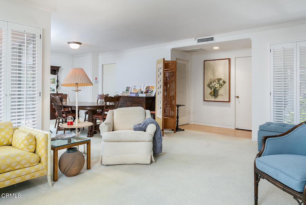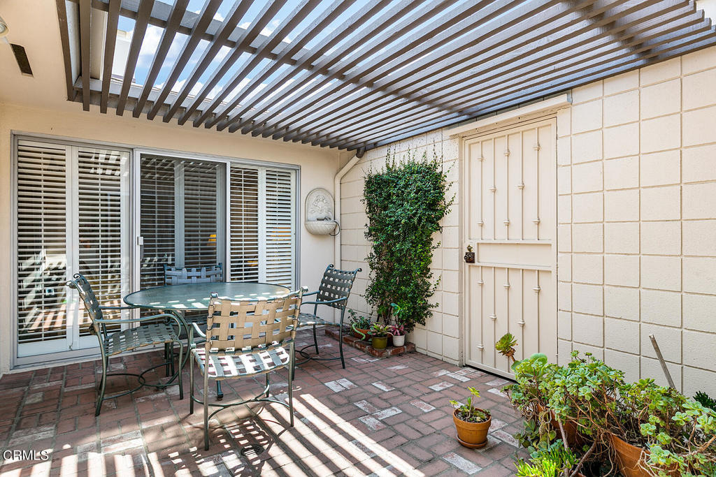 One-story mid-century condo bordering San Marino has mature plantings and blooming fruit trees with a coveted location. This unit has an attached two-car garage and a light-filled atrium--the atrium centers around the living room, dining area, and kitchen. The living room has a fireplace and built-in bookshelves. The window and the surrounding atrium have plantation shutters. The kitchen has been updated and has room for a table and laundry behind closet doors. The primary bedroom is spacious with an en suite bathroom. The second bedroom was used as a den and has custom cabinetry--the second bathroom, in the hallway, is between the living room and bedrooms.Another excellent addition is the pool located in the center of the complex.