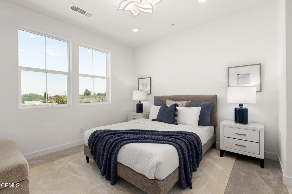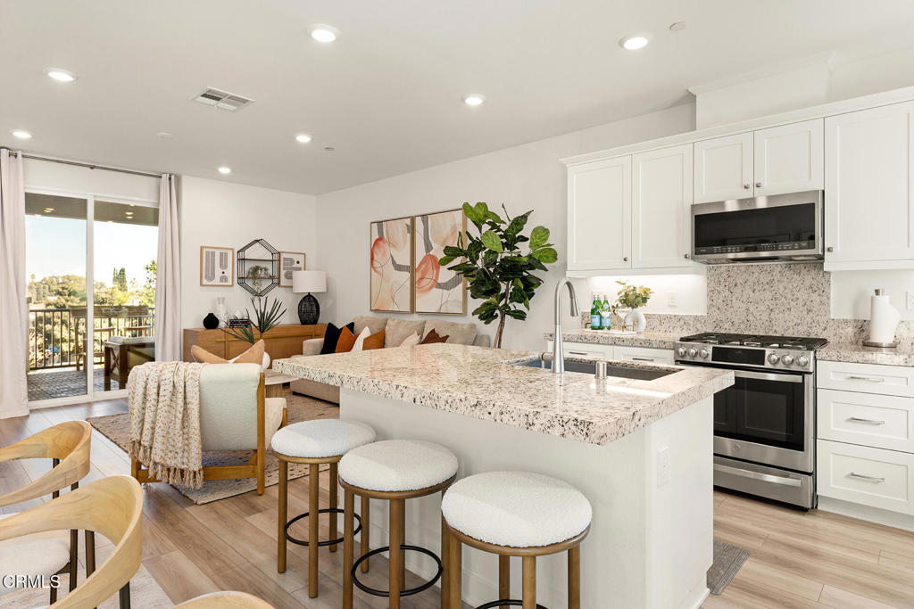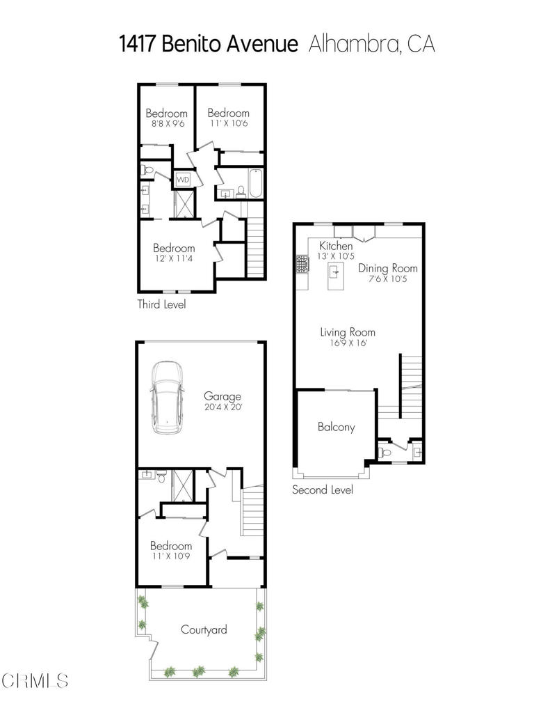 Experience contemporary living at its finest in this stunning condo, located in a highly desirable Alhambra community. Highlights: two primary bedrooms, each with its own en-suite bathroom. Attached two-car garage for convenience and storage. Access to a community clubhouse, swimming pool, and jacuzzi--perfect for hosting gatherings with family and friends. Step into a welcoming private courtyard patio before entering the first floor, which features a primary suite with an attached bathroom--ideal for guests or use as a home office. This level also provides access to the attached two-car garage, offering ample storage and parking. The second floor boasts an open-concept layout, including a gourmet kitchen with stainless steel appliances, granite countertops, and generous cabinetry. The spacious dining and living areas seamlessly connect to a private balcony, perfect for outdoor dining or relaxation. The top floor is dedicated to private living spaces, featuring a luxurious primary suite with an en-suite bathroom for ultimate comfort. This level also includes a convenient laundry area and two additional bright, airy bedrooms that share a full bath.
