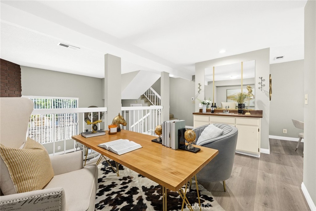 The Bright Tri-level Townhouse is Located in the Desirable N. Alhambra. The Front Patio Welcomes You to this Cozy Home. It Features 2 En-Suite Bedrooms and 2.5 Bathrooms. The High Ceiling Living Room Offers a Brick Fireplace and Large Windows. The Stepped Up Multi-Function Room can be Used As a Family Room, an Office or a Formal Dining Room with a Wet Bar.The Dining Room is Open to the Kitchen. The Bright Open Kitchen Provides Granite Counter-tops, Breakfast Bar, Plenty of Cabinets, A Pantry, Recessed Lights and Stainless Steel Appliances. A Powder Room Downstairs Completes the First Floor. A Large Primary Bedroom has a Private Bathroom, a Walk-in Closet and Sliding Doors to the Balcony. The Spacious Guest Bedroom has its Own Bathroom and a Walk-in Closet. New Vinyl Floor Downstairs. Two Car Attached Garage with Direct Access and the Laundry Area. Central Air and Heating. Association Dues: $300/ Month Includes Fire Insurance, Water, Trash and Community Maintenance. Daily Convenient Location Close to Downtown Alhambra with Short Distance to Schools, Movie Theater, Library, Restaurants, Shops and Super Markets. Easy Access to DTLA and Pasadena.