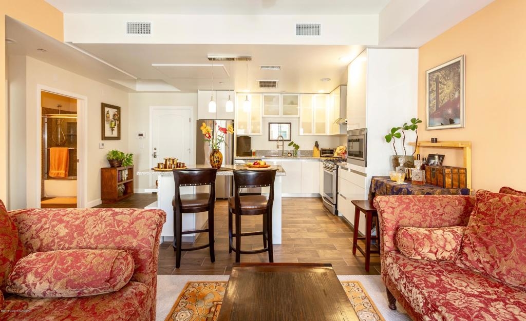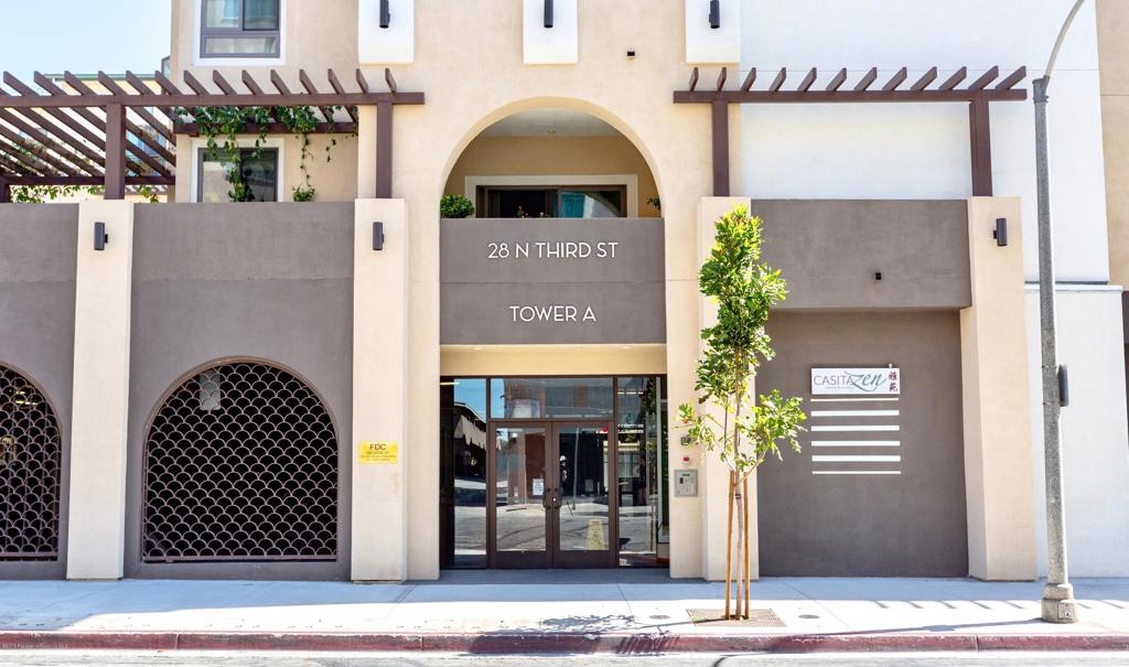 The Casita Zen condominium redefines urban living with a convenient and secure environment in the heart of Downtown Alhambra. Convenient to almost everything - walk to nearby restaurants, theaters, schools, banks, grocery stores, as well as the post office & library. Built in 2015, this 92-unit superior quality complex provides a 24/7 web-monitoring system, secured parking with 2 electric car charging stations, separate visitor parking with secure elevator access. There is a large podium garden courtyard with beautiful landscaping, reflective Koi ponds, and enchanting fountains. This one bedroom one bath unit is spacious and well appointed. The kitchen features European-style cabinets with soft-close doors, stainless steel appliances, and granite countertops. The bedroom has a large walk-in closet and custom organizers. The laundry area with full size washer and dryer is in the hallway. The entry door has a digital key pad, key-less lock, and LED doorbell. There is recessed lighting in all rooms, tank-less water heater, double-pane windows, central A/C & heating, superior noise and heat insulation, noiseless water piping system, and the unit is wired for high speed internet/cables/alarm system/phone/intercom.