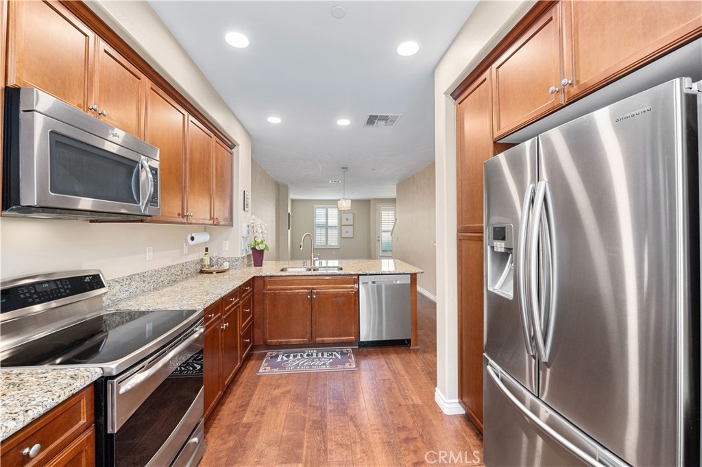 Welcome to Main Street Collection’s which was built by City Ventures in 2012. This Tri-level condo is conveniently located in the heart of downtown Alhambra Main Street area. You have two high ceiling bedroom suites located on the third floor, carpet throughout on this level with a full size stacked washer and dryer conveniently located behind closet doors in the hallway. Primary bedroom is very spacious and has a walk-in closet. Spanish tile flooring in the bathroom with high ceilings throughout the unit. Second level has a dazzling crystal chandelier in the dining area, engineered hardwood floors with an open floor plan to the living room. Kitchen has granite countertops with lots of cabinet space and a good sized island. A convent bathroom for your guests. Attached one car garage and you can rent an additional assigned parking space in the complex underground structure. This gated secured complex has 24 hour video surveillance, paid off energy solar powered system located short distance to banks, cafes, bakeries, restaurants, supermarket and Alhambra High School! Ready to move-in!