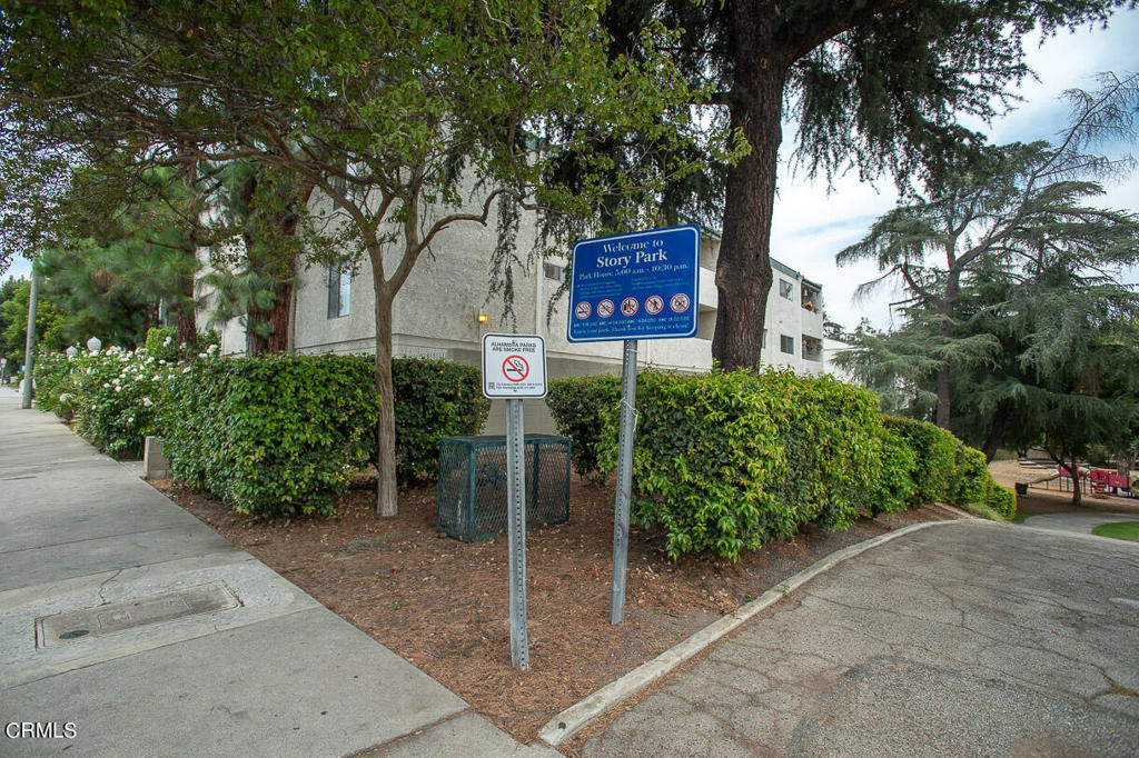 The neighborhood around Story Park in North Alhambra is filled with pines, palms and well maintained homes with great character and style. This home, in the 32 unit Story Park Manor, was built in 1973 and is 800 square feet of living space on one level. The property is adjacent Story Park creating a verdant and shaded courtyard area with tall trees and a welcoming patio. There are NO age restrictions at this property like so many others in Alhambra at this price point. In assessor records, the property shows as 1 bedroom and 1 bath but there is a sizable second bedroom usable as an office, den, living area or second bedroom. The kitchen is well designed with range, dishwasher, double sink and plentiful pantry space. Dual pane windows provide great sound and climate insulation. Low HOA fees of $242 per month includes insurance, water, grounds maintenance and reserves for repairs. Alhambra enjoys exceptional public services, great access to Downtown Los Angeles and many amenities in the revamped Main Street area with dining, shopping and entertainment in close proximity. Underground garage parking for 2 cars. Come see this gem today and move in next month.
