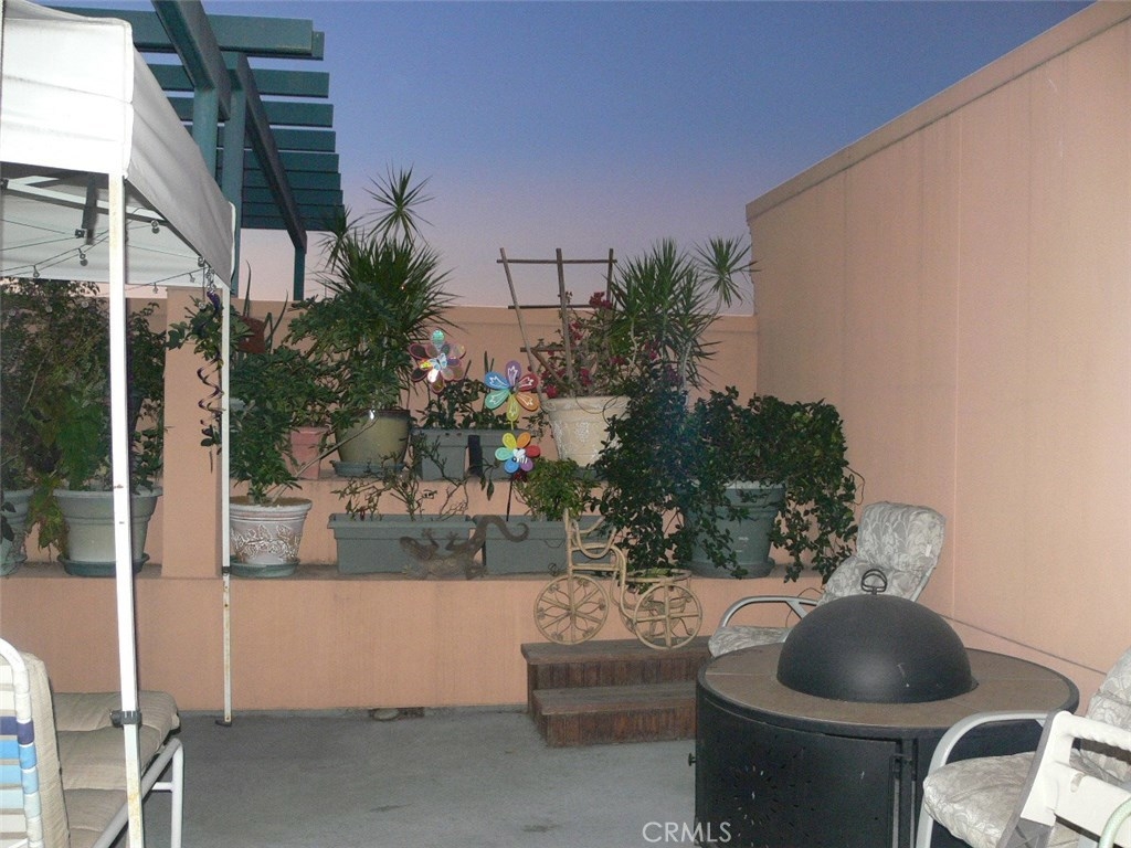 NOT a Senior age restricted complex. Granite Kitchen, All appliances included, Single level floorplan, 4 elevators, & 2 side by side parking spaces ~25 feet from the elevator, in Unit Stacked Laundry. This corner unit has windows facing both East and North. Enjoy meals along Main Street from at least 30 local businesses within a 6 block walk and to the Farmers Market twice a week & live outdoor music 3 blocks away and plenty of nightlife at the bar & grills.North facing private 9x20' patio is exclusive to this unit and there are only 6 condos in Alhambra Regency Plaza with a similar patio. Patio has additional tiered steps for plants or cushions.Two (side by side) parking spaces are in the security gated subterranean garage, & security cameras, gas stove/oven, Maytag refrigerator with ice maker water/ice in the door, microwave, dishwasher, and in-unit washer dryer, No Carpet: All Laminate and Tile Floors, Hunter Douglas wood blinds on 3 windows.Two separate areas for work space or TV.Tub/shower surround and glass shower door. Recessed lighting with Smart Home light switches that dim. Large sliding glass door leads to the private patio. Den or TV room is about 9-1/2'x10' size. HOA FEE $232.77/mo includes Water and Trash.